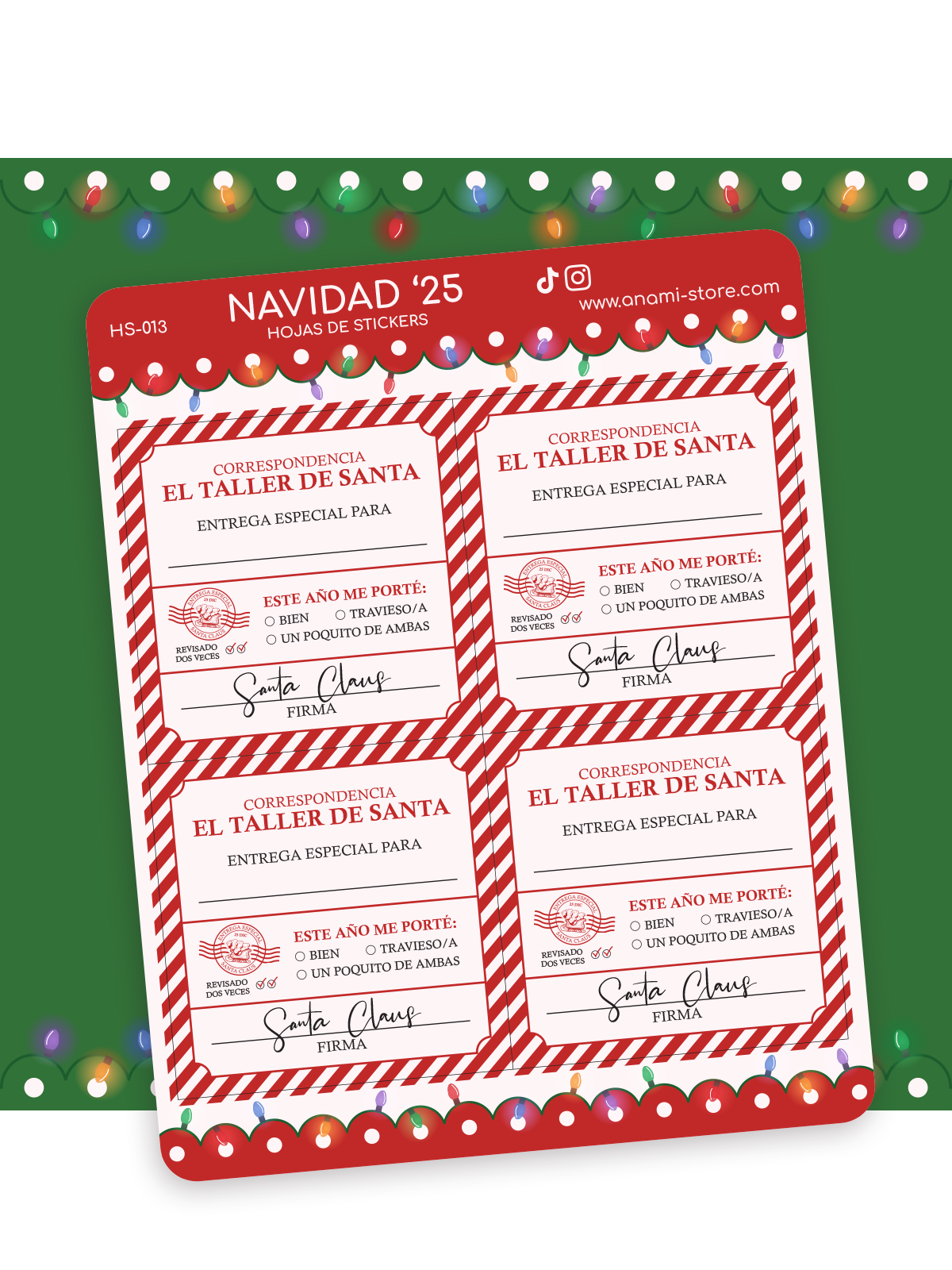 Hoja de stickers de etiquetas del Taller de Santa Claus.